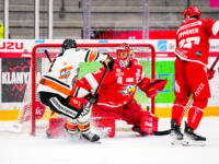 Sport #28 Johan Sundström vs. HPK #6 Juuso Pulli & #30 Sami Rajaniemi.