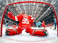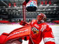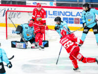 Sport #80 Kalle Miketinac scored on Pelicans #70 Jasper Patrikainen.