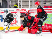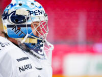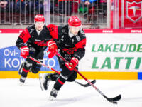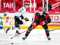 Sport #91 Sebastian Wännström hits one behind TPS #1 Oskar Autio, #62 Casimir Jurgens defending.