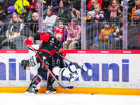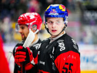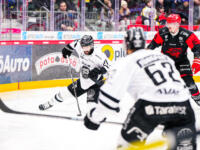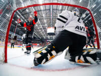 TPS #27 Aidan Dudas puts himself and puck past Sport #95 Miroslav Svoboda.